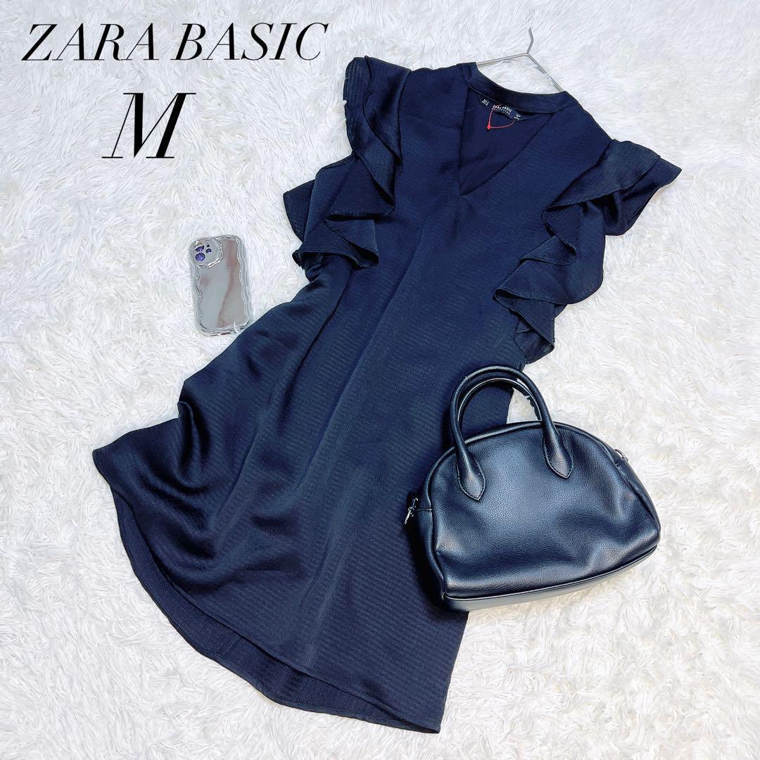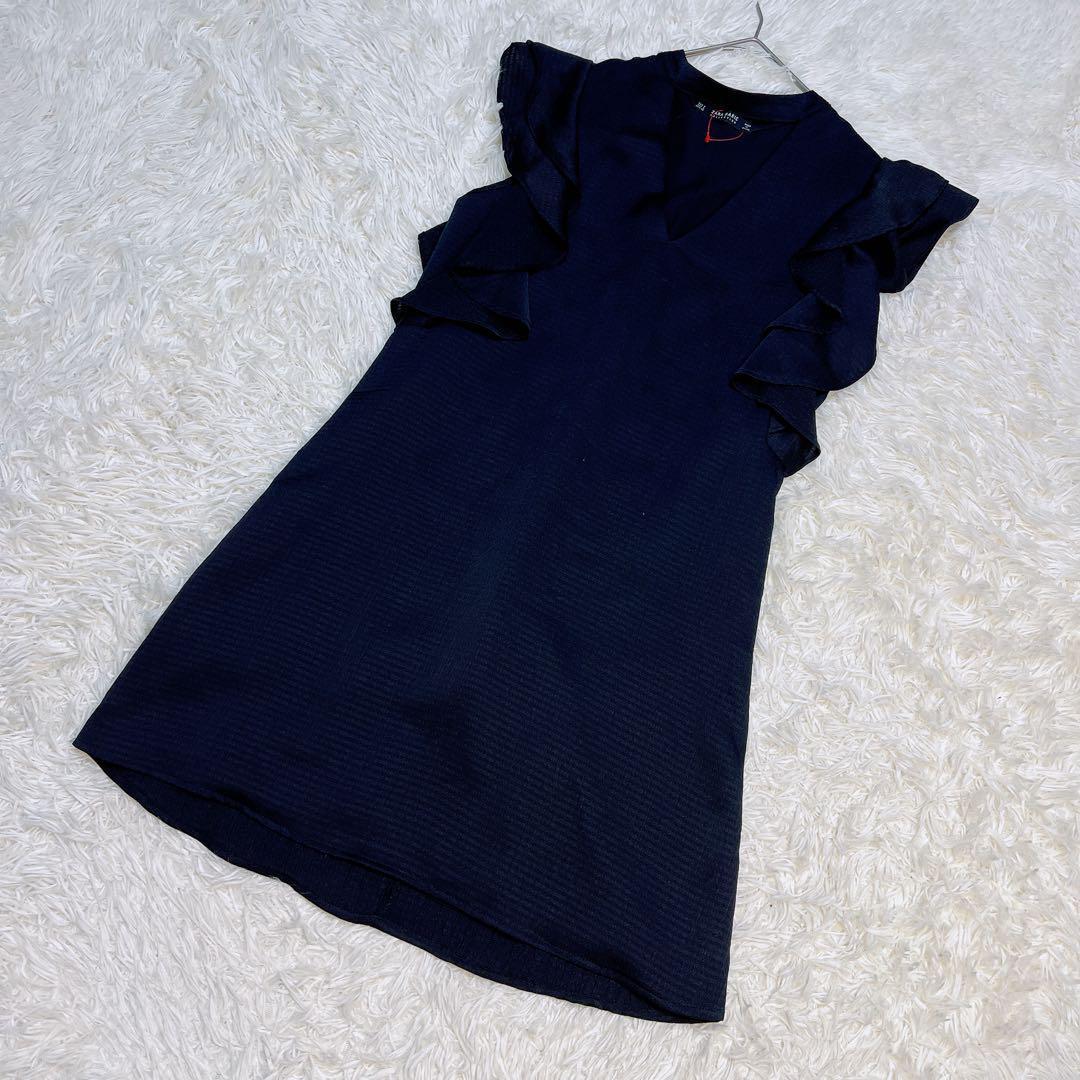 ザラベーシック/ワンピース/ブラックフリルノースリーブ/ネイビー/M/❣️