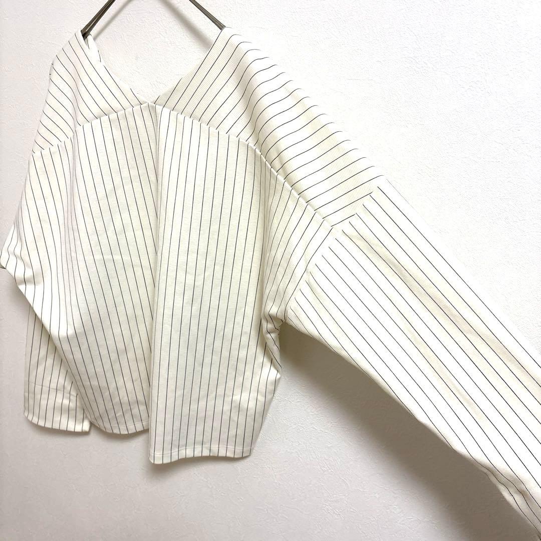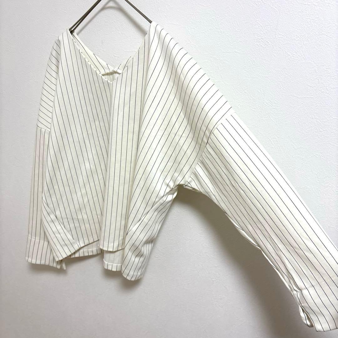 【VIS】トップス Vネック ホワイト×ブラック ストライプ size:F