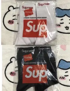 新品)Supreme クッションソックス 白黒セット ステッカー付