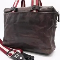BALLY ライン 2way ショルダー ビジネス バッグ 黒 革 レザー A4
