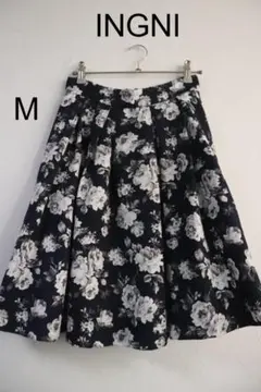 【美品】INGNI(イング)花柄アシンメトリースカート M ブルーフェミニン