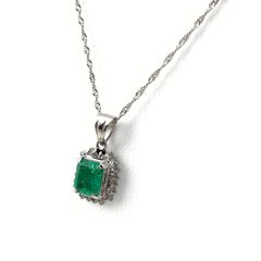 プラチナ950 エメラルド ダイヤ取り巻き ネックレス