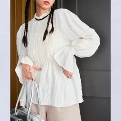 VISのオシャレなゆったりリボンブラウス、サイズはフリーで色は白です。