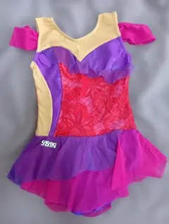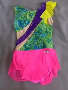 カラフルな幾何学模様のノースリーブ水着、体操に最適。