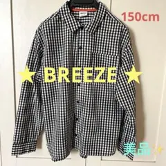 BREEZEのサイズ100のチェック柄長袖シャツ、前面ポケット付きでカジュアルに最適。