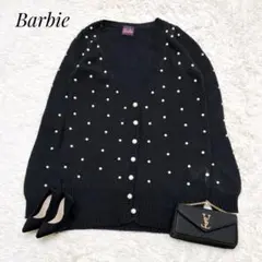 パール装飾が特徴のブラックカーディガン、Mサイズ、長袖。