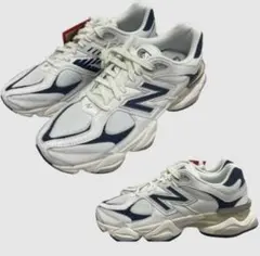 メッシュアッパーとラバーソールを備えたホワイトのスニーカー。