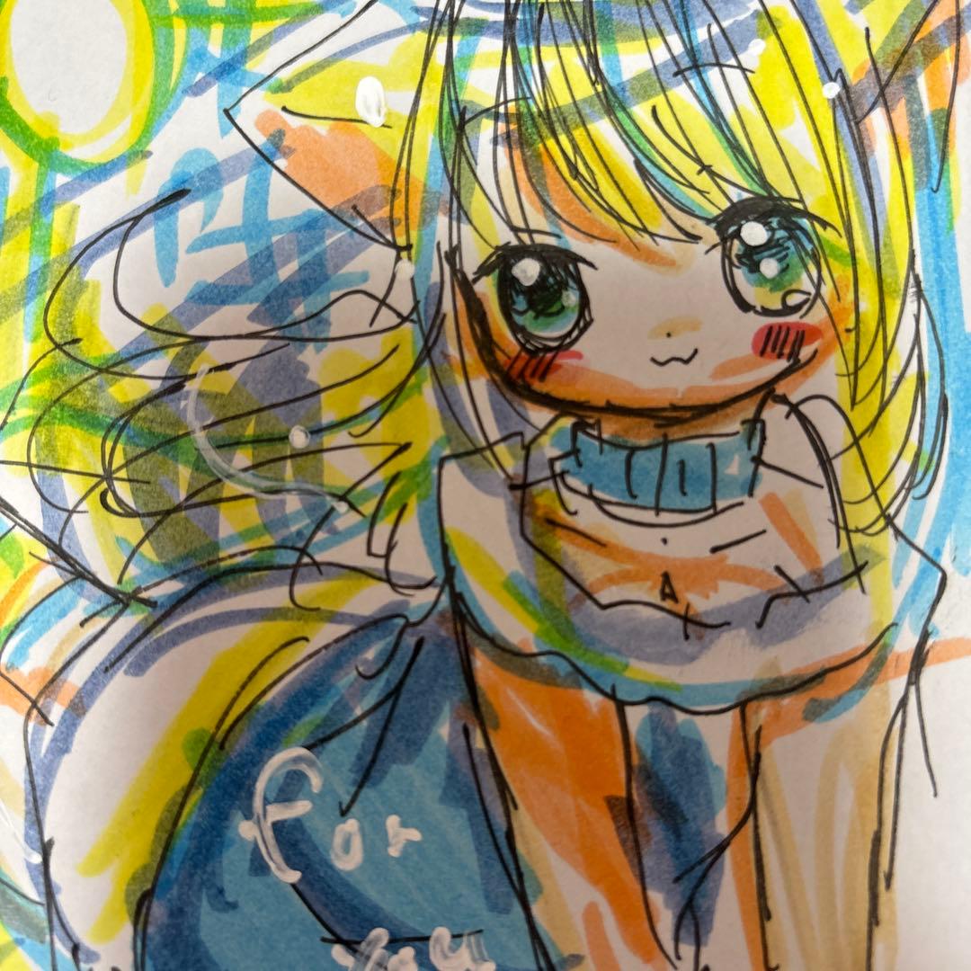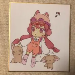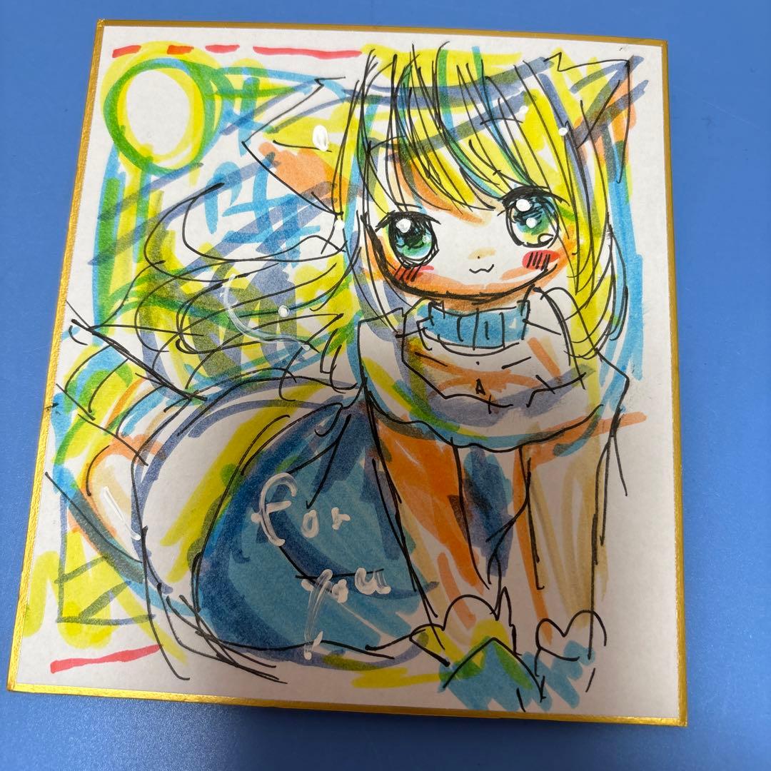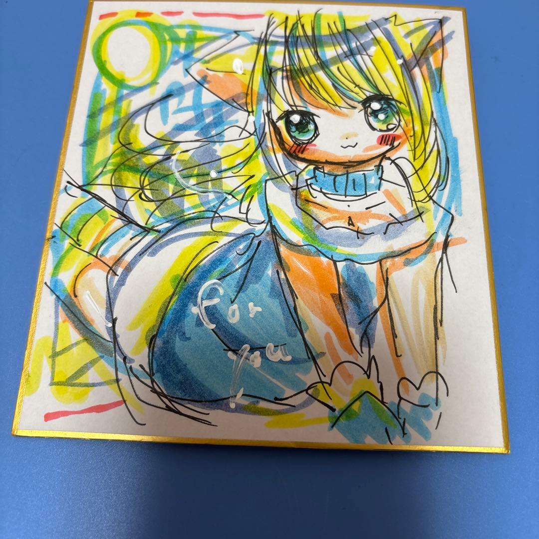 ありがとうセール手描きイラスト。小色紙。猫耳サンタの女性