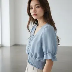 袖のふんわりした感じと横のシルバーのボタンがポイントです。