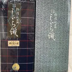 赤と白の縞模様に青とピンクのアクセントが入った浴衣の反物