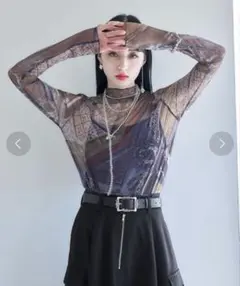 □他には無い、目を惹く柄が特徴的でモードな印象に