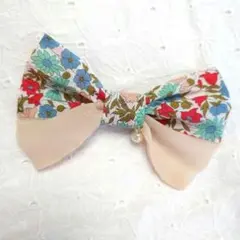 ブラウンのリボン型バレッタ、プラスチック製でクリップ式の留め具。