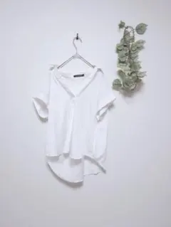 【美品】ストライプ柄 フレア袖シャツ サイズL しまむら
