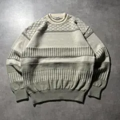 6AS2【ヴィンテージ】ケーブル編み ニット Vネック ベージュ 古着used