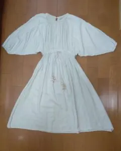 ★TORRAZZO DONNAフレアスリーブワンピース リネン混 ボタンカバーなし 汚れあり ベージュ レディース ロングワンピース 長袖 ウエストリボン