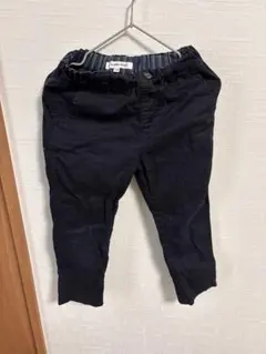 フリンジ裾デザインのブラックボトムス、サイズL。