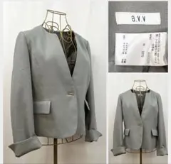 フリンジ仕上げのグレーのツイード風ジャケット。