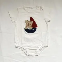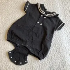 ホワイトのセーラー襟に刺繍デザインが施されたロンパース。