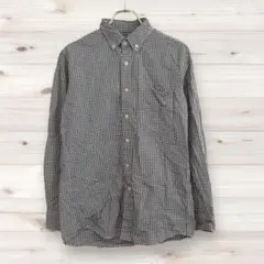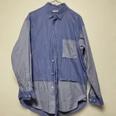 青と白のストライプデザインのUNIQLOの長袖シャツ、Mサイズ。 ノンアイロン