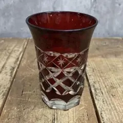 G2291【極美品】江戸切子 ペア ロックグラス 赤・青セット 伝統工芸 文様