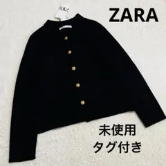 ZARA ザラ ニットカーディガン 厚手 アーガイル柄 金ボタン ウール混 M
