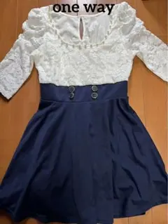 【ONE WEY】クリーム色と水色のレースワンピース ドレス パーティー 結婚式