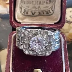 英国 イギリス ヴィンテージ 派手 ダイヤモンド風 銀色 指輪 リング 14号 メンズ ゴツい シルバー 蚤の市 ブロカント ビンテージ アンティーク