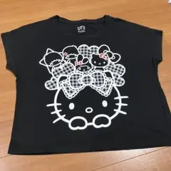 ハローキティの可愛いグラフィックが特徴のベージュTシャツ。