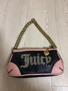 ハート型の金具とポケットが特徴のピンクのショルダーバッグ。