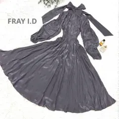 【FRAY I.D】サイズ1 バックボウタイ プリーツロングワンピース グレー