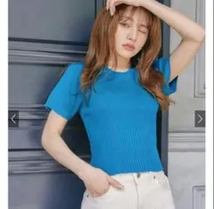 リブ編みのピンク半袖トップス、GRL製。