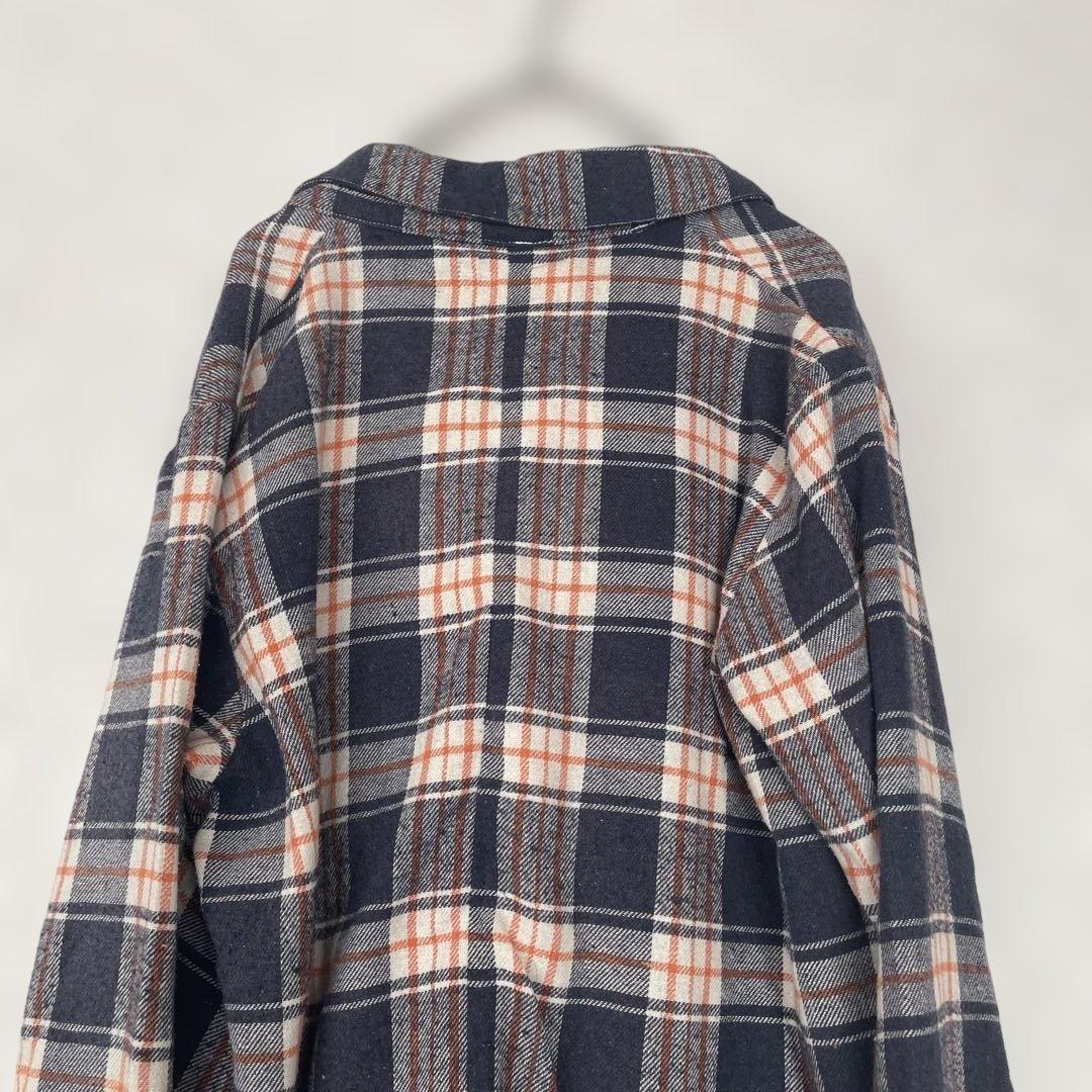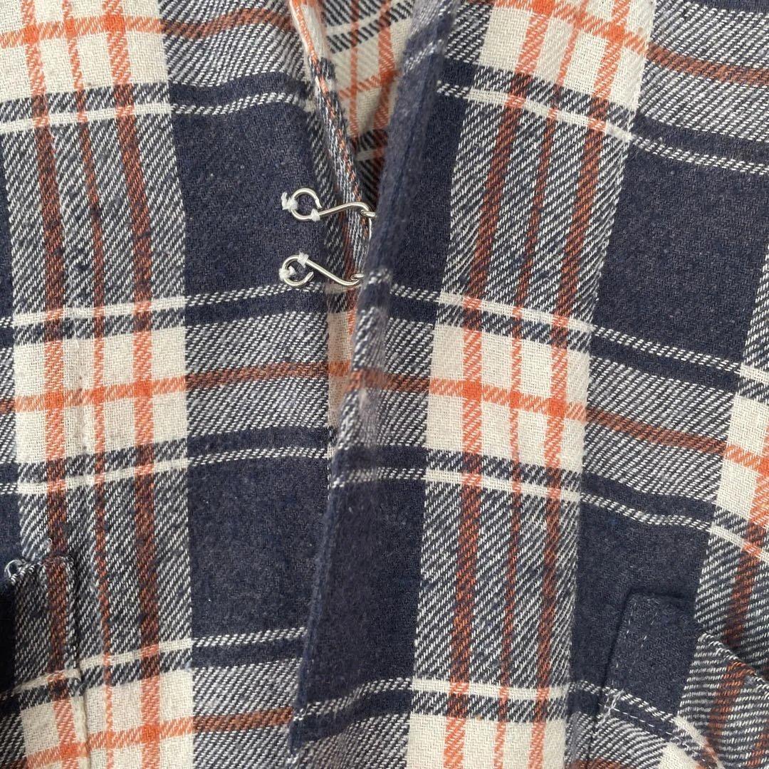 ネイビーとオレンジのチェック柄、フロントジッパー付きネルシャツガウン