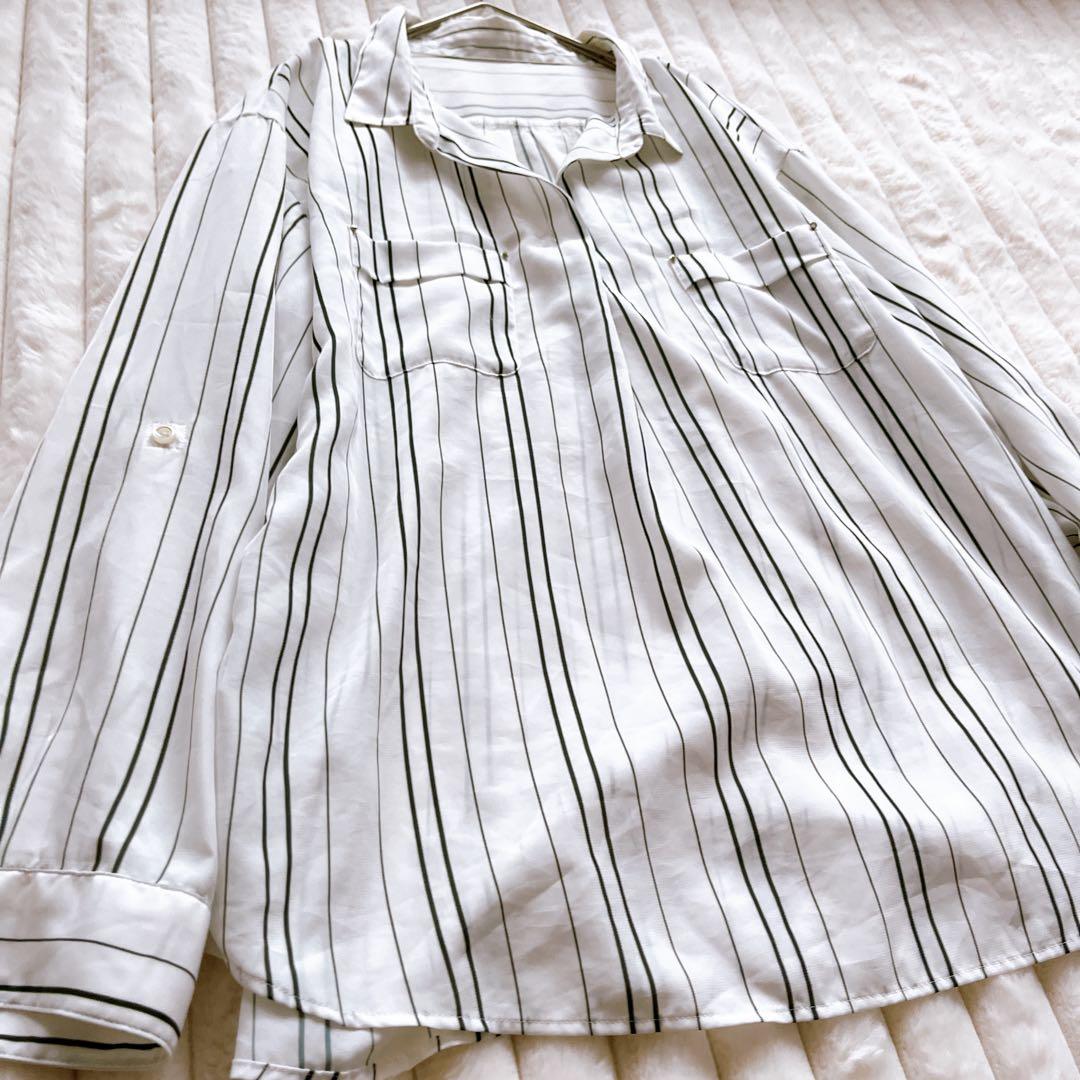 anySIS エニィスィス 長袖シャツ M ストライプ 白&緑 フォーマル