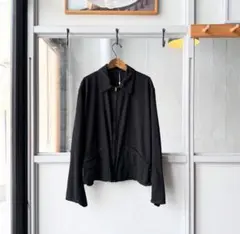 フロントは繊細なジップ、両サイドにポケットのついたシンプルなデザインで、裾の絞りは少し強めに設定されているので自然なブラウジングのふくらみが出ます。ゆったりとしたシルエットに共生地の裏地付きでふわっと軽い着心地なので、前を開けて軽く羽織るようなイメージのスイングトップです。
