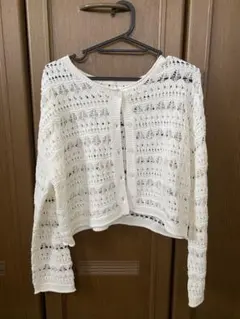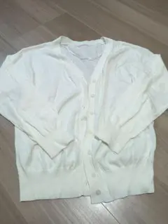 GUの白と黒のストライプデザインの長袖カーディガン、XSサイズ、柔らかな素材感が魅力。