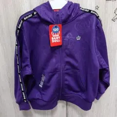 青いクラウン柄のフード付きアウター、110サイズ、ポリエステル100%で暖かい。
