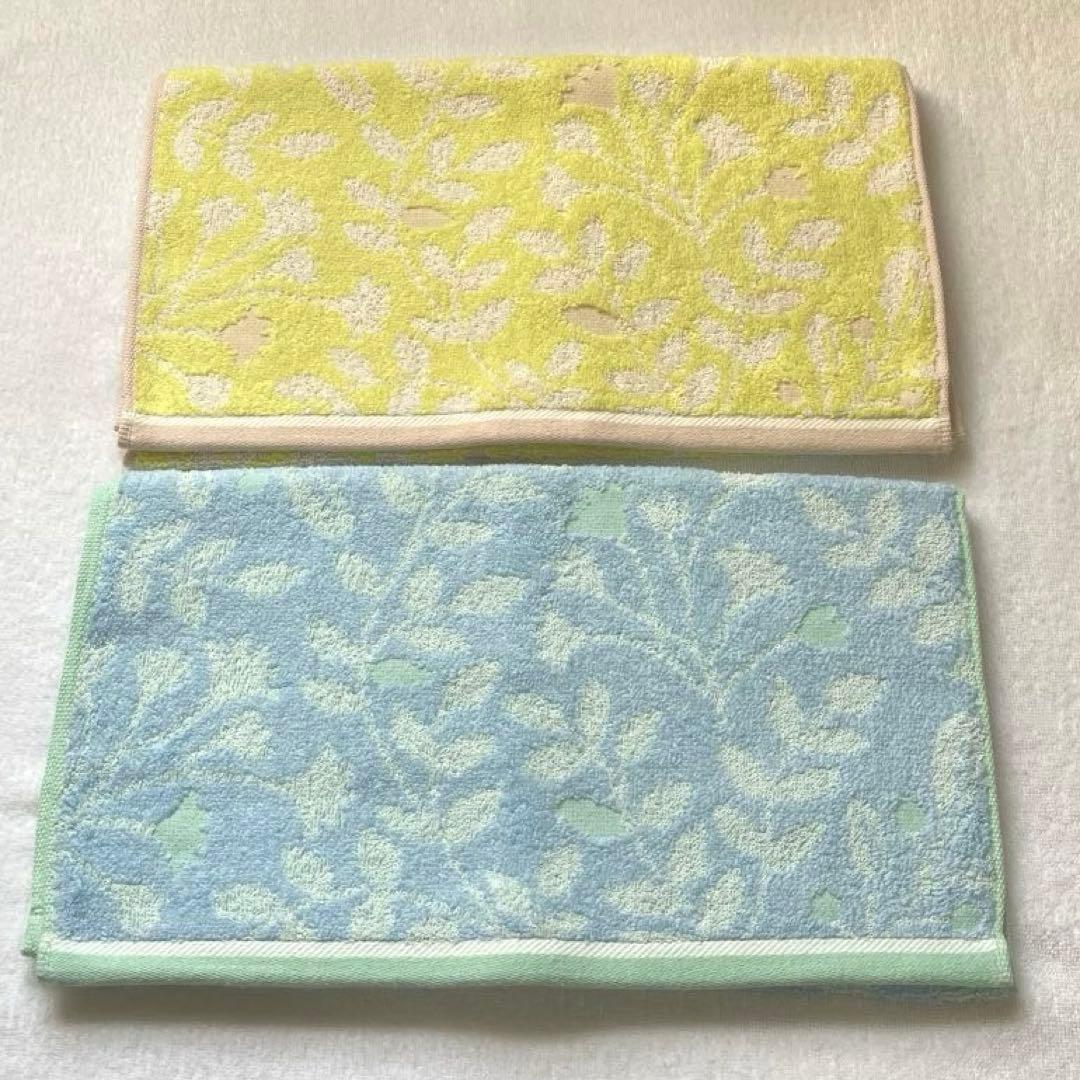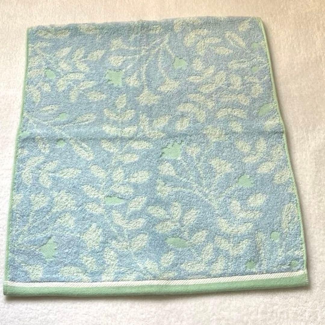 フェイスタオル 無撚糸 UCHINO 北欧リーフモスブルー&イエローグリーン③