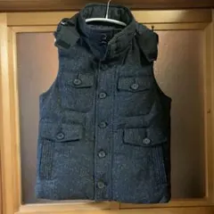 グレー系のチェック柄で、フロントポケット付きのスタイリッシュなベストです。