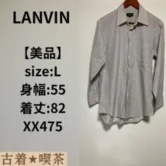 美品 ランバンコレクション シャツ ストライプ ホワイト コットン 日本製 L