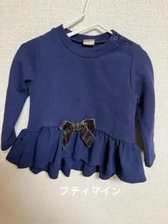 フリルデザインのベージュニットトップス、約90cmまで対応。
