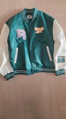⚪︎こちらは着心地抜群のスウェット生地、胸元と背面の刺繍ワッペンがレトロでスタジアムジャンパーの要素もありストリートスタイルに最適。