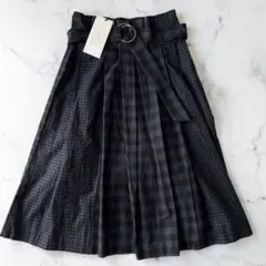 ZARA デニムプリーツミディ丈ベルト付きスカート
