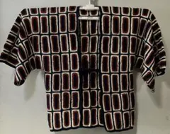 手編みニットカーディガン モチーフ繋ぎ、ゴールドボタン付き