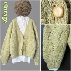 手編みニットカーディガン モチーフ モヘア オフホワイト ハンドメイド