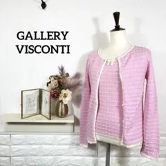 ギャラリービスコンティ リボン ロング カーディガン ショールカラー ピンク