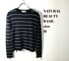 ナチュラルビューティーベーシック オーガニックコットンストライプチュニックシャツ