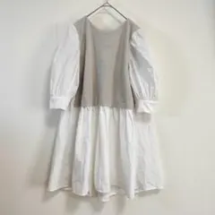 腰が隠れる位の丈で、深めVネックのギャザーと留め輪付きの七分袖が特徴です。
