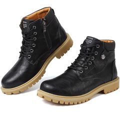 レザー製のミッドカーフブーツ、ラバーソール、伝統的なレースシステム。