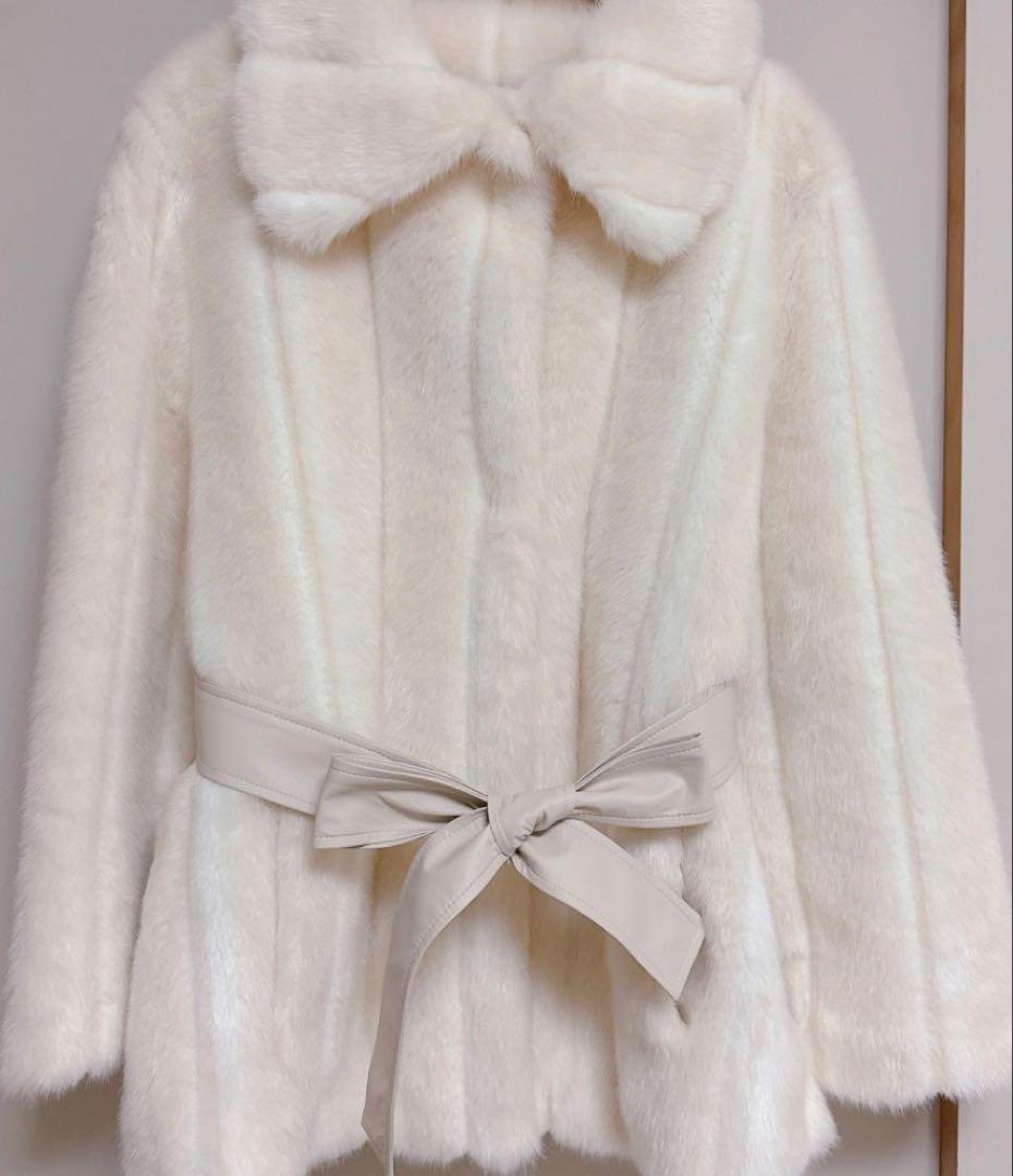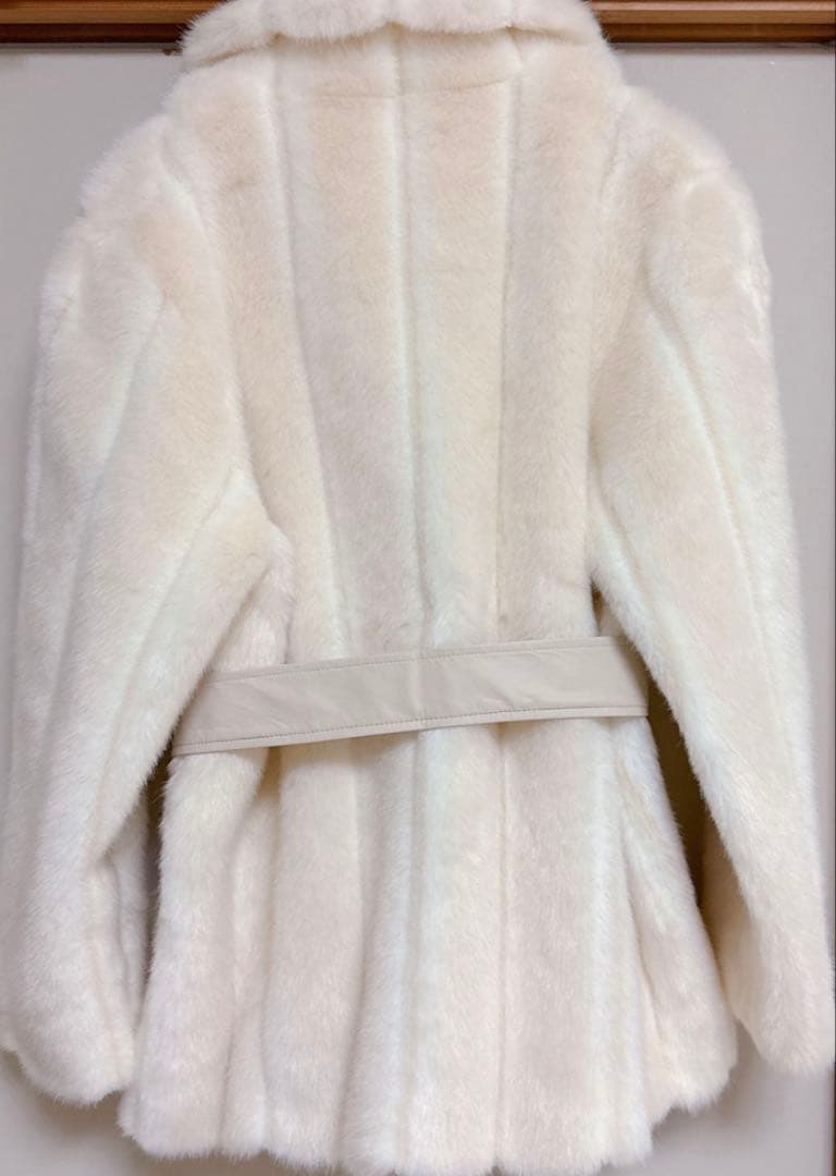 ivoryカラーは、女性らしさ抜群◎真っ白すぎない絶妙なファーカラーがお上品❤︎ベルトもivoryになっています❤︎