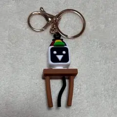 赤いキャラクター型のプラスチックキーホルダー、ゴールドの金具付き。